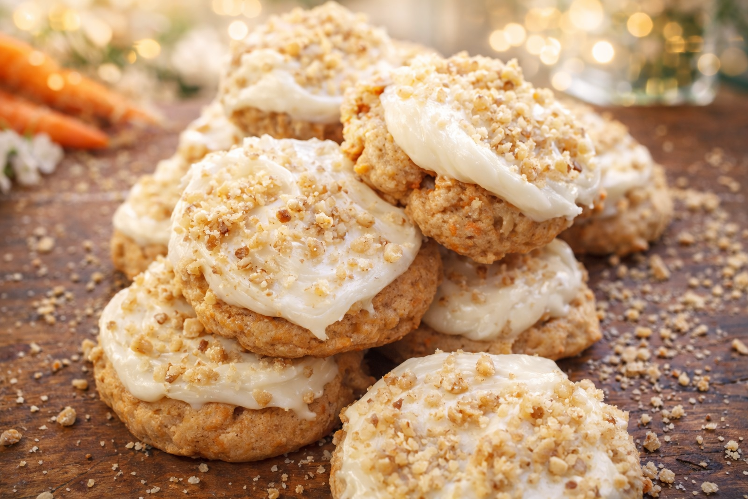 Soft, cake-like carrot cookies made with warm spices and real grated carrots, finished with a generous swirl of creamy frosting and a sprinkle of crushed nuts. Each bite brings that classic carrot-cake comfort in cookie form—tender, lightly spiced, and made with care from scratch.